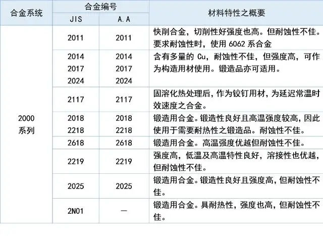 2xxx 系列: 鋁銅合金,如 2024、2014 等。具有高強(qiáng)度,但耐腐蝕性較差。